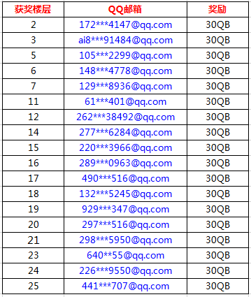 QB奖励将通过邮箱发放,请保持邮箱开通状态,否则视为放弃哦