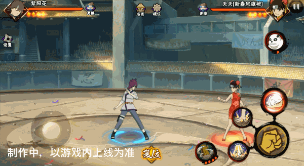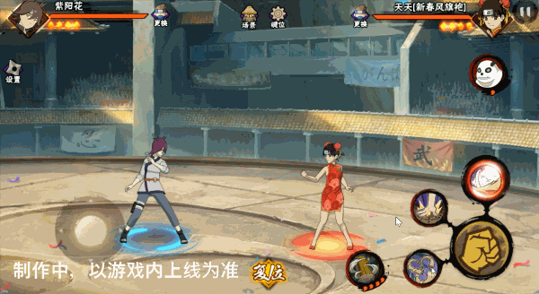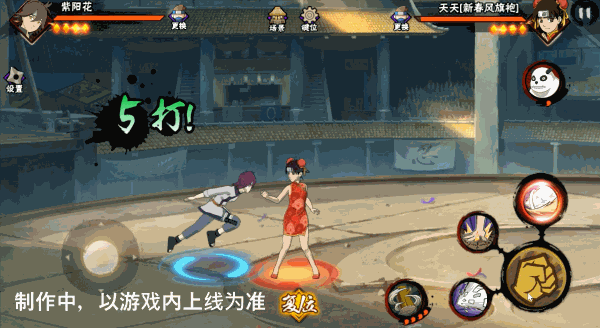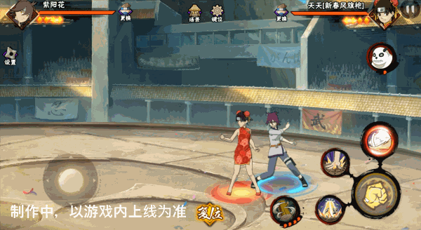 紫阳花的普通攻击共4A,1、2A体术平推,3A跃起并高踢腿击飞对手,随后落地,4A手持苦无旋转连击对手