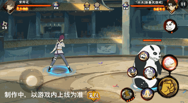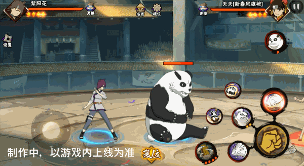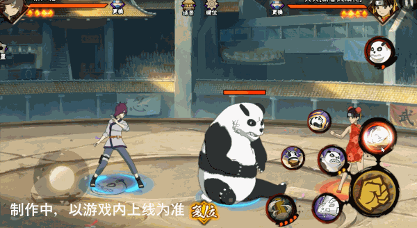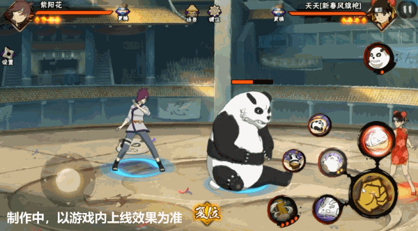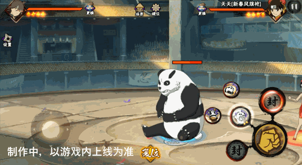 紫阳花使用封入之术将对手吸收进封印中,随后双掌推出,使用开封术将对手和砂土用更强劲的力量喷出造成持续伤害。在奥义持续时间内可以长按二技能控制熊猫衔接连招。