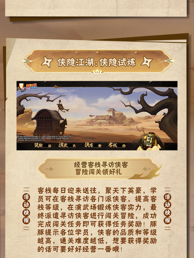 赛事期间当然少不了赛事限定忍者!即日起-11月12日12:00期间,漩涡鸣人「无差别限定」、宇智波佐助「无差别限定」限时返场,学员们和鸣人佐助一起,为小组赛应援吧!