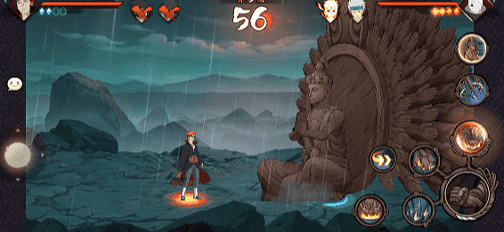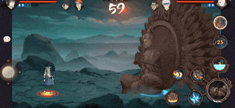 释放一技能五遁之术:火遁可以全图追踪敌人,并附加灼烧效果,可用于针对绕至大佛身后的忍者。