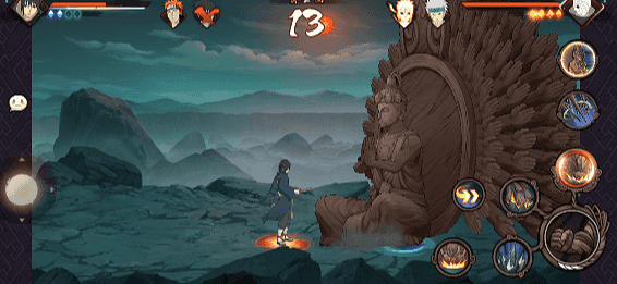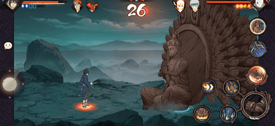大佛始终面朝前方,释放子技能即可转向,转向带合掌打击动作,可用来打击想从下方绕至大佛身后的敌人。
