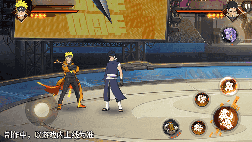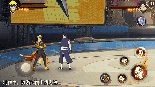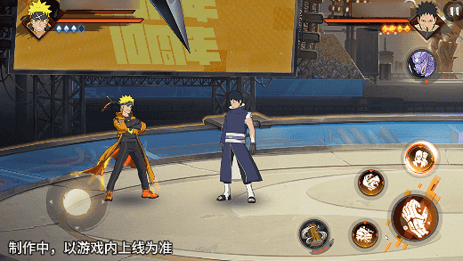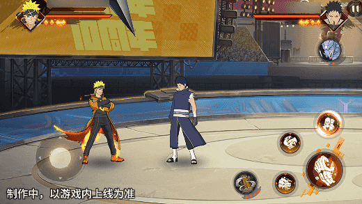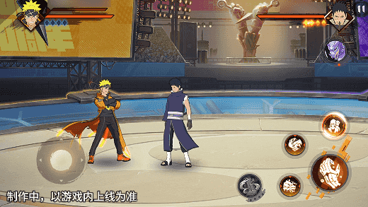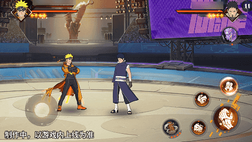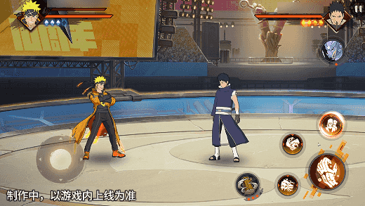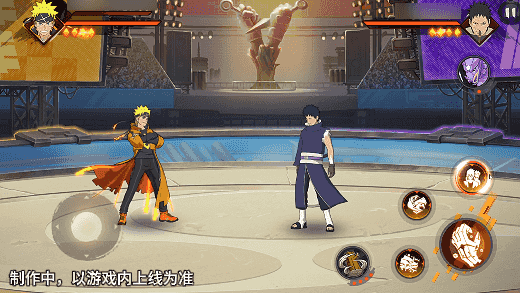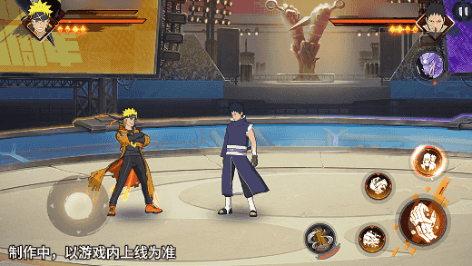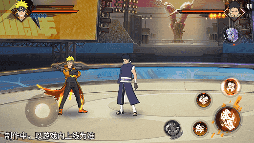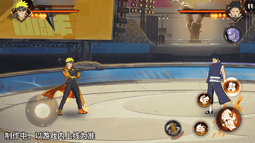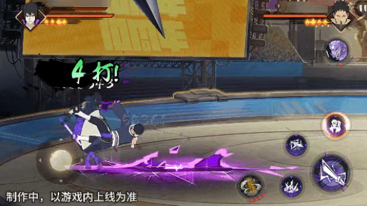 鸣人登场时普攻共4A,1A用尾兽化的外衣形成爪子向上爪击,2A转身用尾巴横扫,3A跃起连续爪击,期间可以拉摇杆多次转向拉扯敌人,4A推出一记螺旋丸。