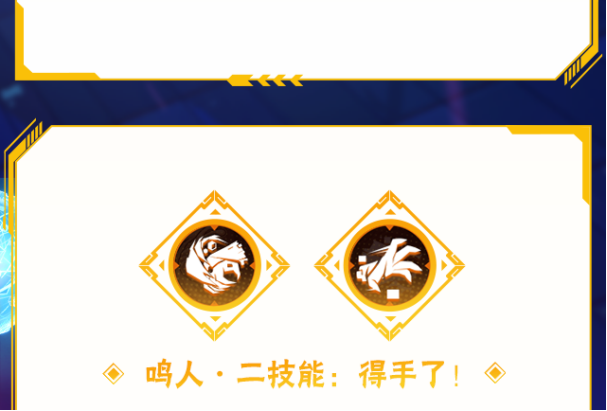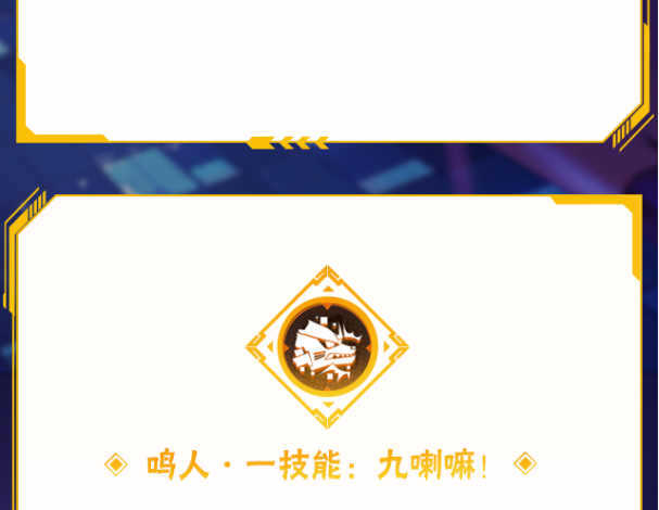 鸣人登场时二技能共两段,点按释放一段,鸣人的尾兽外衣将形成一双大爪。黄条结束前可释放二段,鸣人瞬身突进抓取敌人,随后挥拳将敌人大力击飞。