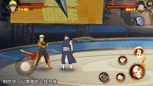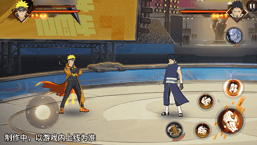 鸣人或佐助任意一方登场时,长按奥义键,可消耗4颗奥义点发动奥义。鸣人使用超大玉螺旋手里剑,佐助使用须佐能乎加具土命攻击敌人,最后形成威装须佐能乎横扫斩击,将敌人终结!