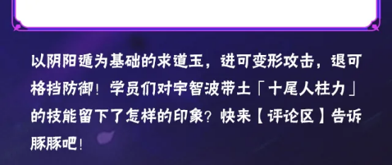 豚豚小提示:当十尾带土的下一个技能需要使用左手求道玉时(包括一技能、二技能、常态5A、强化2A、强化4A、强化5A、奥义),该护盾会被主动收回,随后用左手释放出下一技能。但在护盾完全收回之前,仍然可以提供短暂的格挡效果。