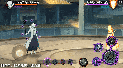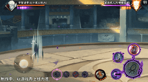 十尾带土可通过一技能划普攻、一技能划二技能、二技能一段对普攻进行强化,解锁强化后的普攻表现,被强化的普攻会在屏幕下方亮起图案。若当前光圈内的普攻段已经被强化,则自动强化下一段。