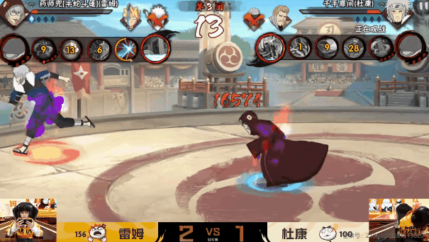 第三局,雷姆的漩涡鸣人「暴怒·第六尾」连续击败杜康两名忍者,最后雷姆利用技能优势成功抓住杜康走位,击败对方再赢一局!