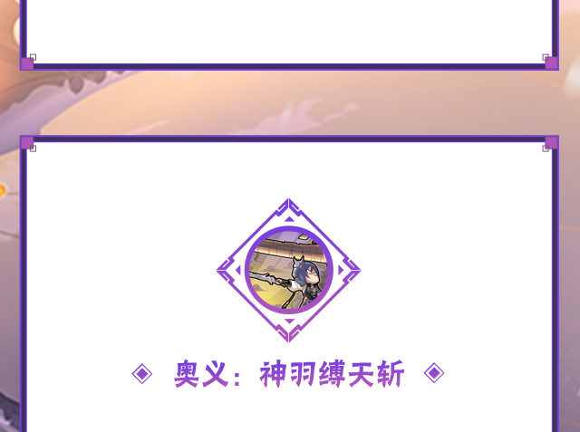 释放奥义时,神驹小南召唤带着纸锁链的千幻蝶持续打击敌人并捆绑抓取,随后操控巨型夜翎刀斩破云雾,给予敌人终结一斩!若未成功抓取仍会对场内敌人造成伤害哦~