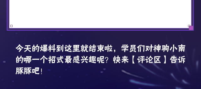 神驹小南可将手中的千幻蝶化作飞刃或夜翎刀进行攻击。神驹小南的普攻共6A,前2A操控千幻蝶平推,3A纸化前冲再反向升空斩击敌人,4A、5A滞空使用夜翎刀向下挥斩出两道刀光,并留下两把千幻蝶在地面,会在场上停留一段时间后消失,6A俯冲弧斩,将多把千幻蝶滞留于敌人周围,随后收势操控千幻蝶刺穿敌人。豚豚小提示:4A、5A、6A时,可以小范围调整神驹小南的位置哦~