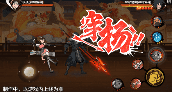 点按释放奥义:穿杨,神驹天天后跳抛出卷轴,挥舞手上的箭筒攻击敌人,随即后跳用腿拉满弓弦,蓄力射出强力的三种属性箭矢终结敌人。奥义后可接