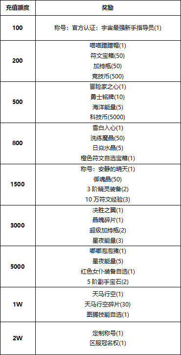 所有玩家每个档位将获得一次限时100%返利机会,详情请查看游戏内“超值福利”;