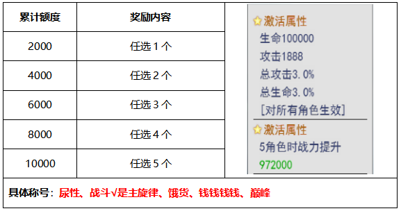 总共5个称号获取完毕后不再获得,此为年度活动,机会难得,不要错过!