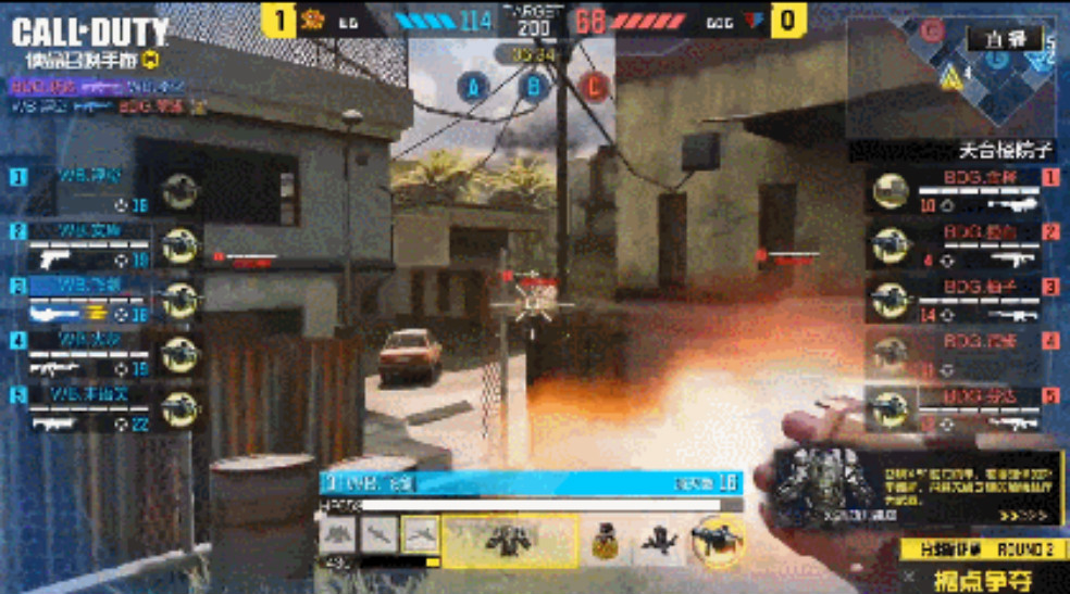 下半场伊始,WB战队率先来到坠机点,开启重火力清理楼道,BDG被打了个猝不及防,随后WB占下AB两点。当比分来到114比69时,WB.飞剑开启动力机甲,于天台楼下方的栅栏处,展开火力网,直接堵对方的复活点。在强大的火力下点死两人。随后BDG金梣开启战争机器,欲击杀飞剑,没成想飞剑灵活走位,连躲两发炮弹,随后点死金梣,再点死一人,完成四杀。这波之后,BDG面对WB再无还手之力。最终,WB以200比144的比分赢得本场比赛。
