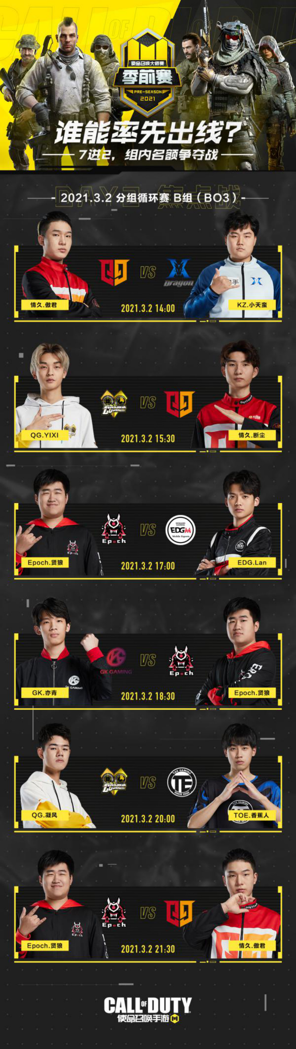 A组赛事已经结束,3月2日14:00,B组的组内循环赛将正式打响,7支战队之间的捉对厮杀,谁能率先突出重围呢?