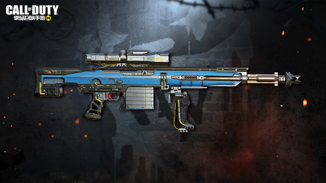 Arctic50-铠甲武士采用了深蓝色枪身设计,现代感十足。其脚架、握把和枪口制退器均采用了特殊金属材料进行加固,使武器更具工业气息,霸气外露。