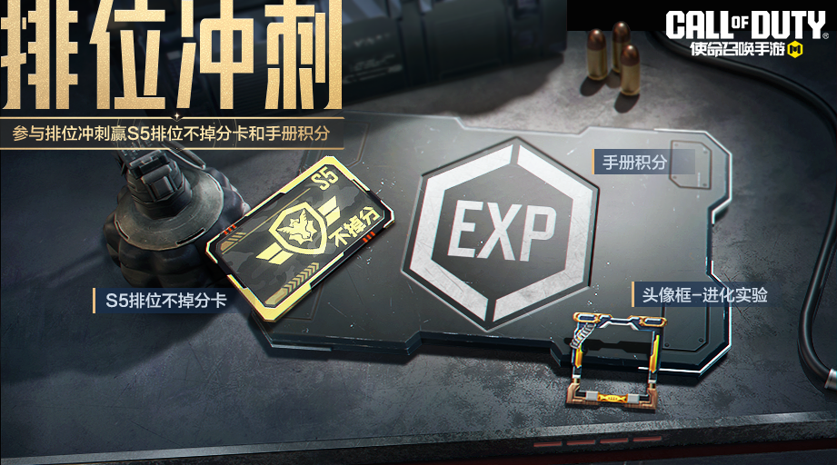 排位冲刺进行时,多种好礼拿不停!12月6日(本周五),排位冲刺活动正式开启,战士们在活动期间参与多人对战排位赛,完成指定任务,即可获得S5排位不掉分卡、手册积分和头像框-进化实验等精美奖励。