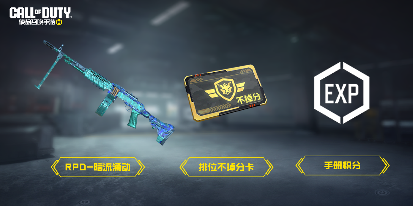 ● 【新版本预约礼】惊喜登场,预约新版本,即可获得稀有级武器:RPD-暗流涌动和排位不掉分卡;