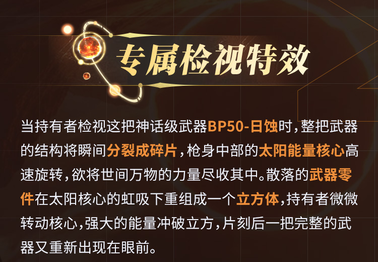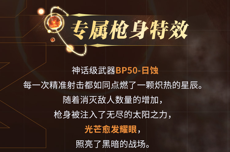 8月16日(本周六),神话级武器BP50-日蚀即将返场,炫光暂时遮蔽,只为迸发之时!