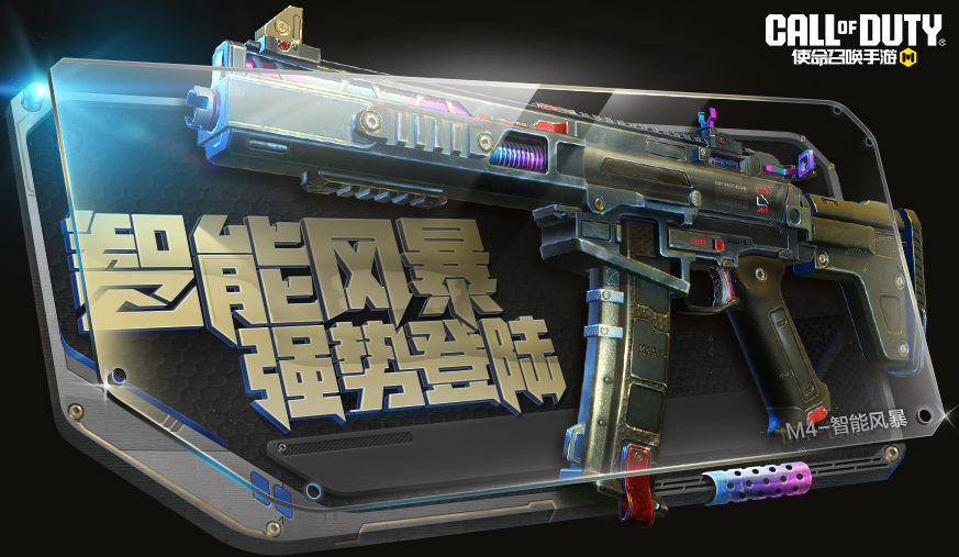 再次返回战场的M4-智能风暴、AK117-智能风暴,在原有力量感突出的黑铁上,加入了紫蓝渐变元素,多了一些生动与色彩。