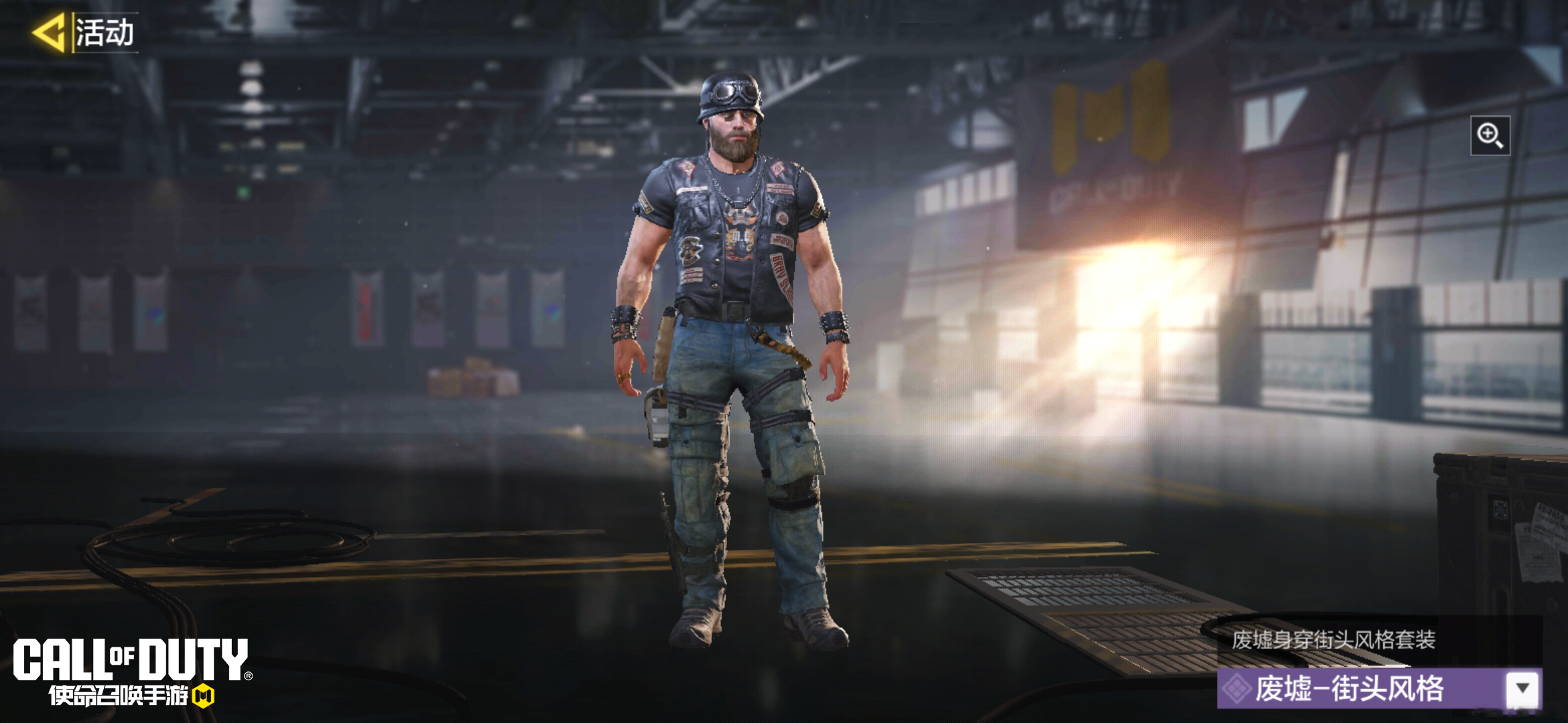 废墟-街头风格以一身随性不羁的街头装束亮相。他身穿黑色印花T恤衫配上皮质马甲,并手持Kilo 141-炫彩昆虫抵达战场。