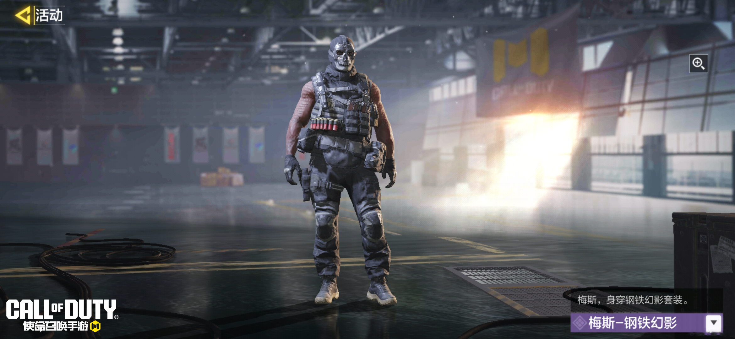 梅斯-钢铁幻影上身只搭着一件黑色的战术背心,露出双臂的大块肌肉。在武器上,他选择了侵略性十足的SKS-罗刹武士!