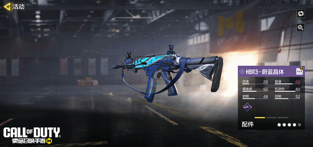 HBR3-蔚蓝晶体以深蓝色为主色调,枪身流淌着淡蓝色的光芒,冰冷且充满力量。
