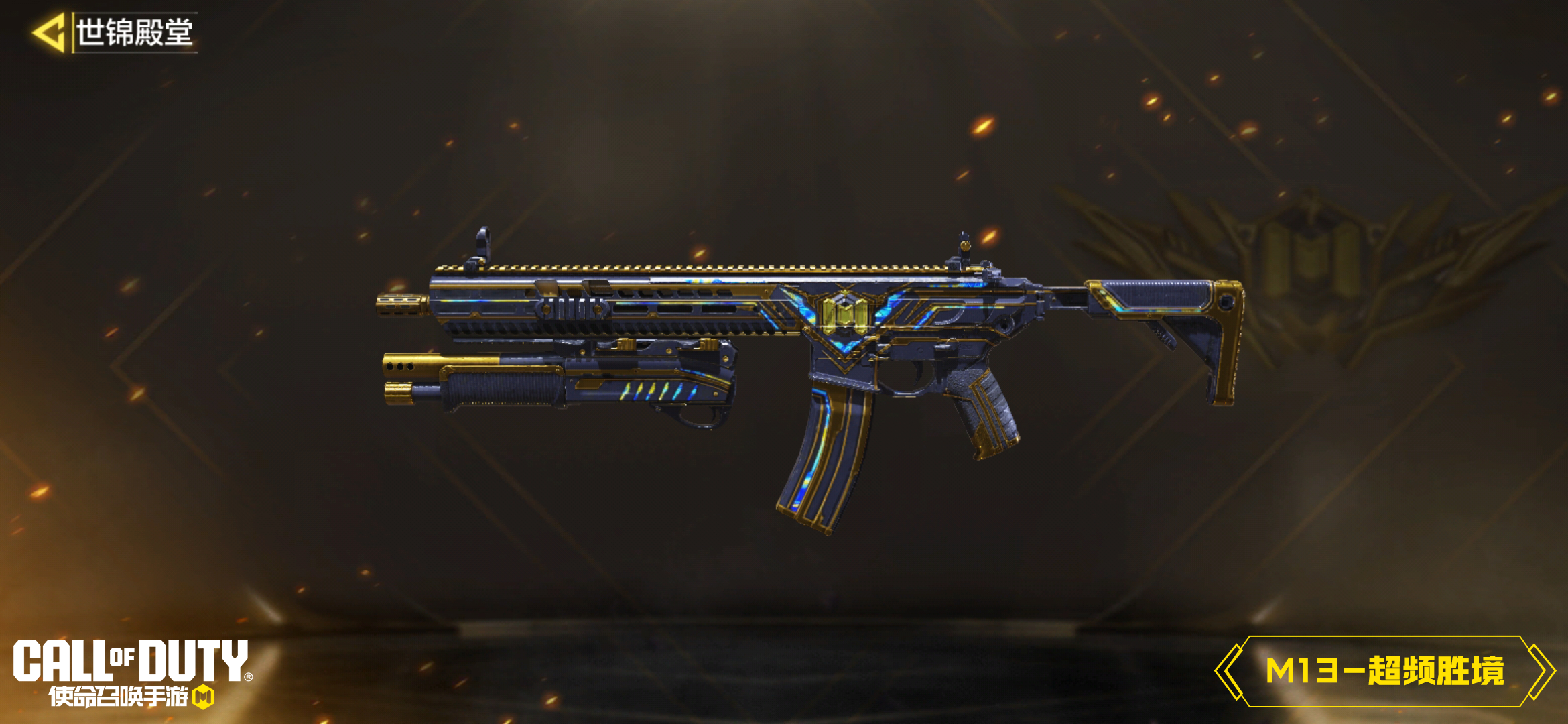 M13-超频胜境枪身的金属光泽与蓝光线条交织,并展现出经历多次淬火的独特美感。