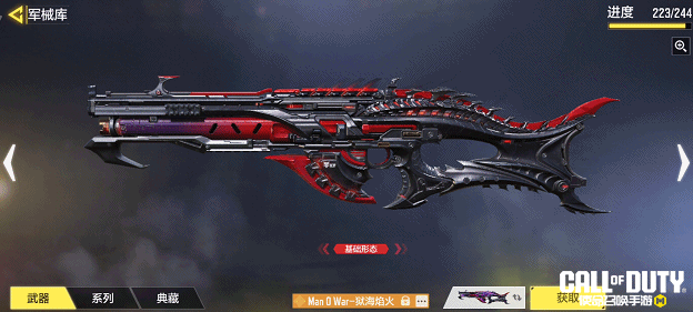 Man O War-狱海焰火仿佛是从地狱深处升起的烈焰,带着不可一世的霸气。一条黑龙盘旋在枪身,绚丽的光影如同龙鳞,在黑暗中闪烁着危险的光芒。握把和枪托的设计流畅而充满动感,仿佛是龙的爪牙,随时准备给予敌人致命一击。
