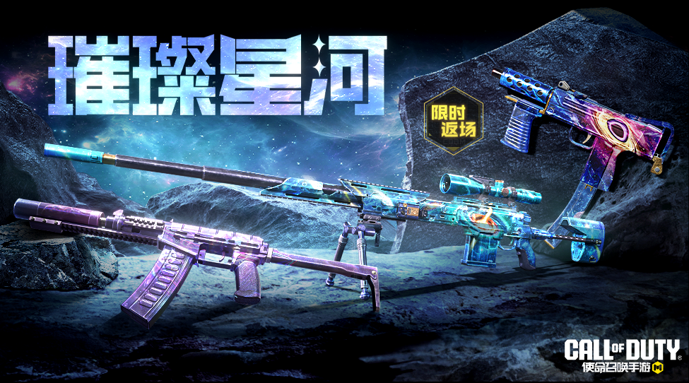 DLQ33-璀璨银河的枪身印有绚烂的银河,与AS VAL-宇宙尘埃、Mac 10-黑暗中心共同展现出宇宙的浩瀚和神秘。