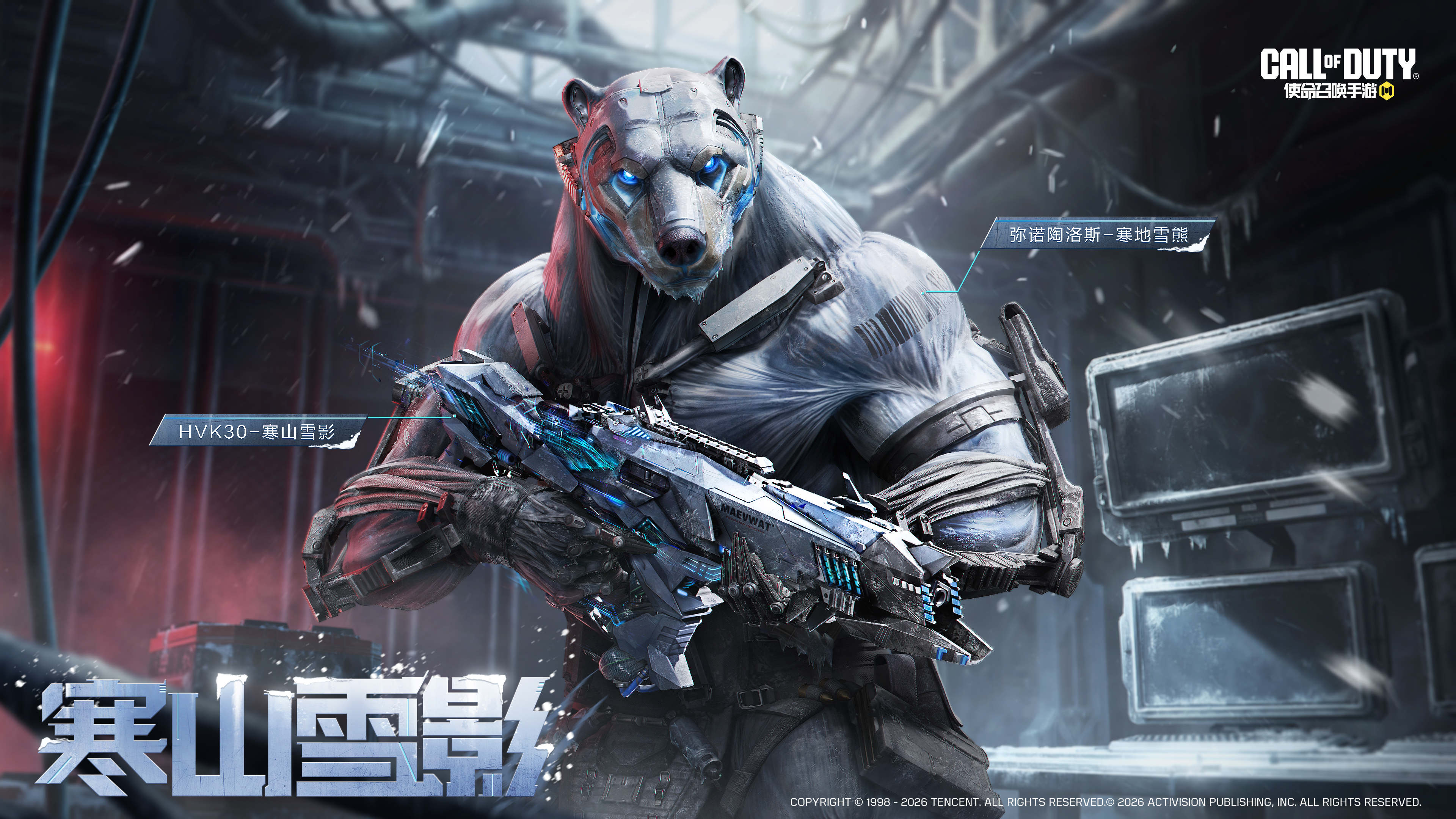 1月30日(本周五),寒山雪影活动正式开启,弥诺陶洛斯-寒地雪熊手持传说级武器HVK30-寒山雪影强势登场!