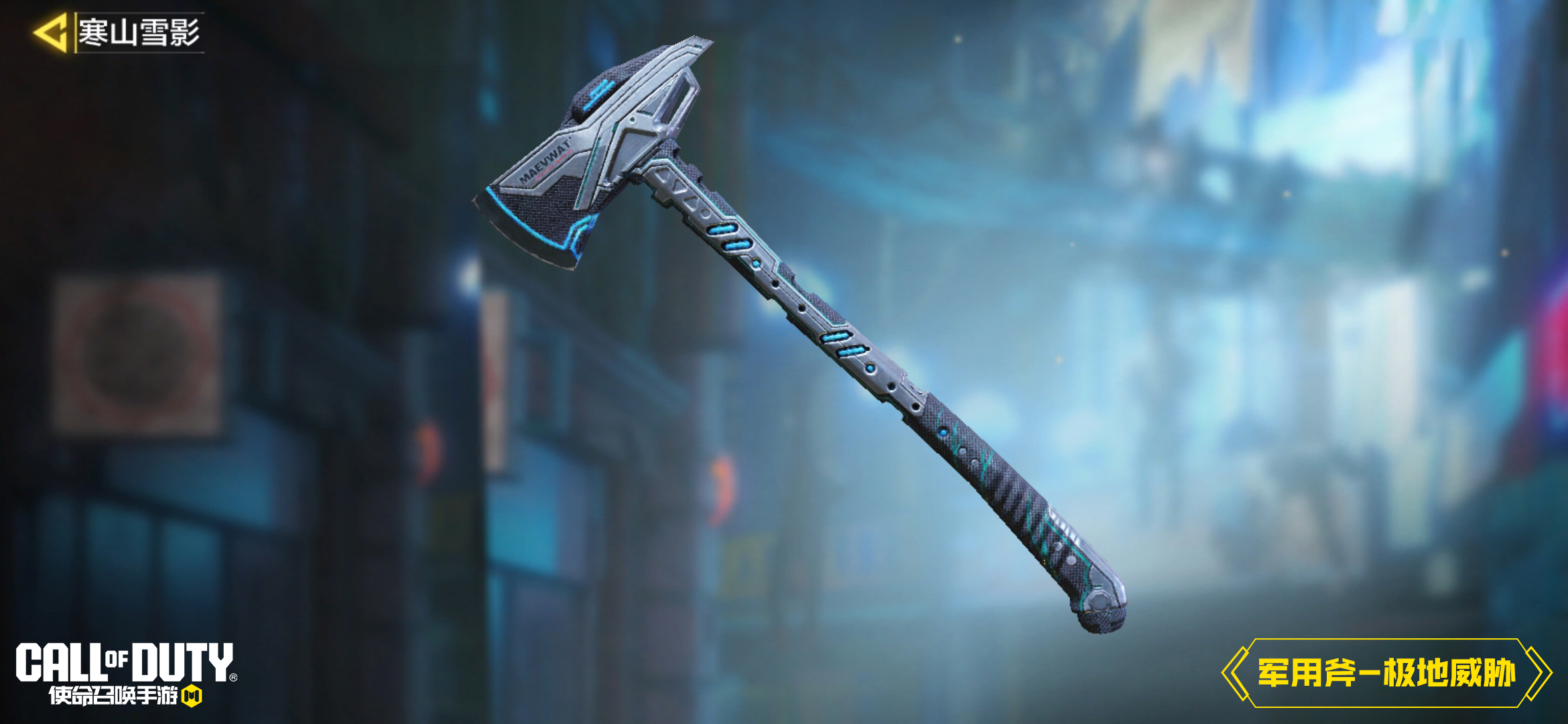 军用斧-极地威胁拥有一个流线型的斧头,边缘锋利,表面覆盖着碳纤维纹理,显得既坚固又轻便。