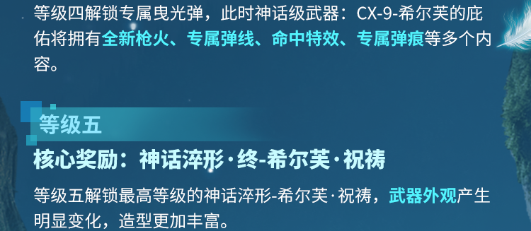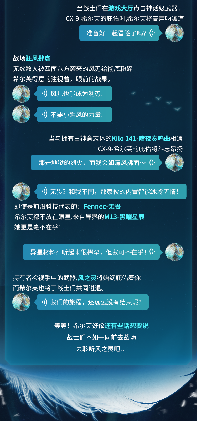 1月31日(本周六),神话级武器CX-9-希尔芙的庇佑即将返场! 武器内置的智能“希尔芙”也将再次为战士们带来指引!