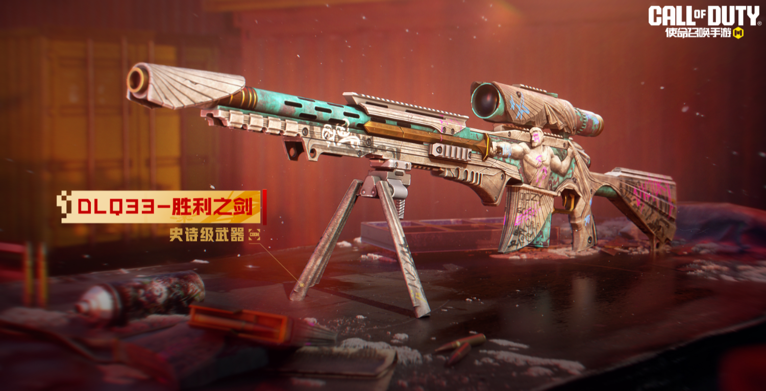 DLQ33-胜利之剑的枪身带着铜锈,是历史的见证。弹匣上方的战士手握金色长剑,刺穿敌人的防线。