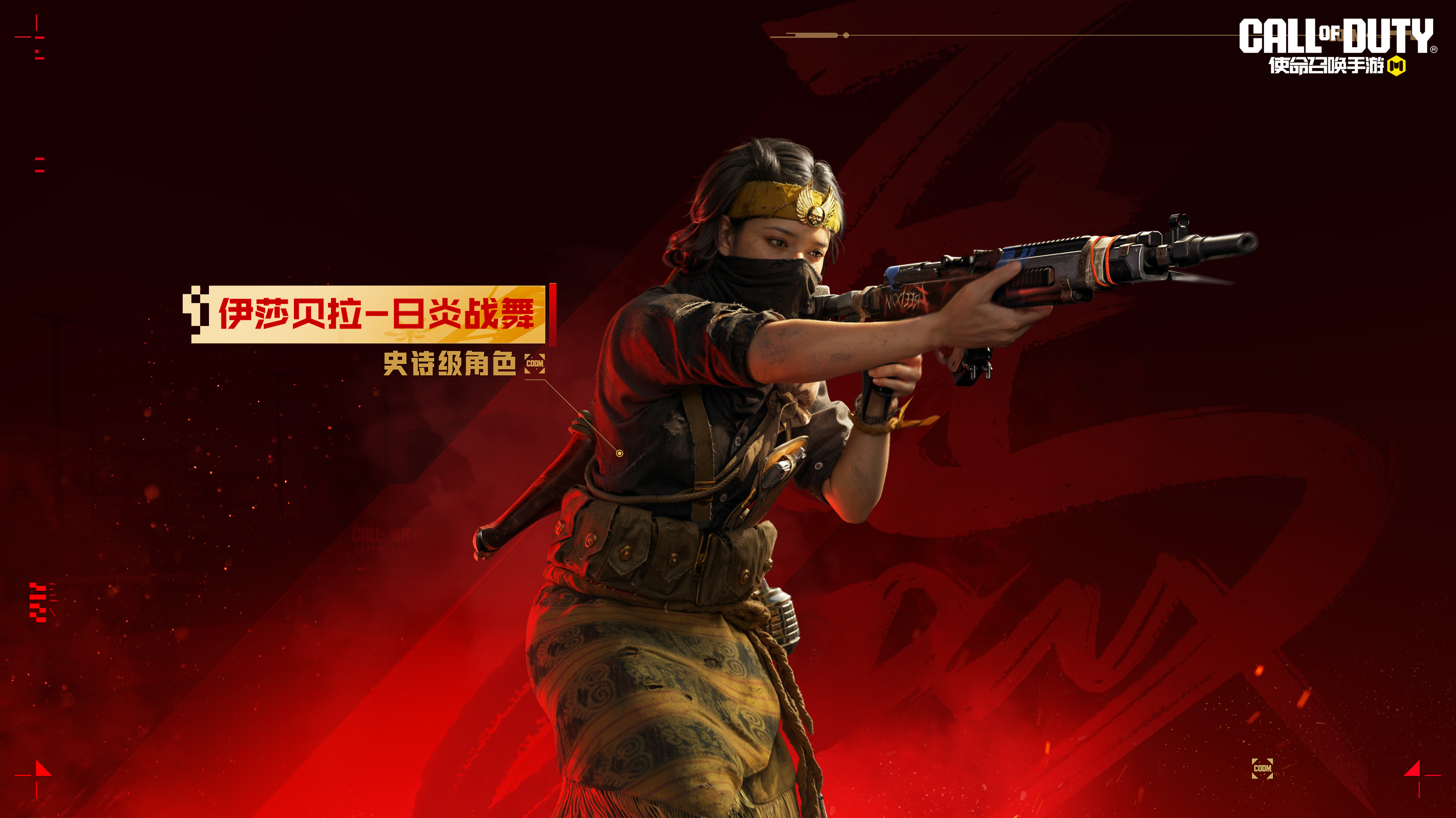 伊莎贝拉-日炎战舞的金色发箍如烈阳之冠,非洲图腾裙随着步伐舞动,她本身就是一团行走的火,点燃战场的激情。