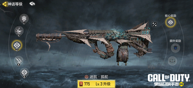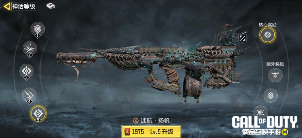 解锁神话淬形·终·迷航·扬帆寓意着这把武器已经锁定目标,进入最终形态,准备扬帆起航!枪托上方的桅杆被修复,顶部的旗帜随风摆动,风帆完全展开——这艘消失已久的幽灵船即将开启新的征程!