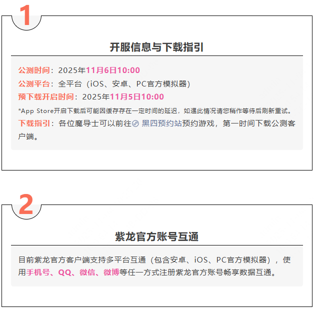 恰咪酱特别整理了以下开服信息、预下载公告和公测福利活动( • ̀ω•́ )✧