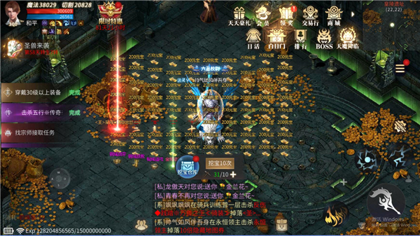 挖宝在外层,每10次一挖,挖掘需要消耗鹤嘴锄,大家可以在个人BOSS玩法中获得,也可以花费灵符购买,不过灵符购买每日限制次数,这一点大家一定要注意。前期挖宝还是非常合适的,能够让我们迅速获得一套较高的装备。同时还能获各类稀有道具材料。