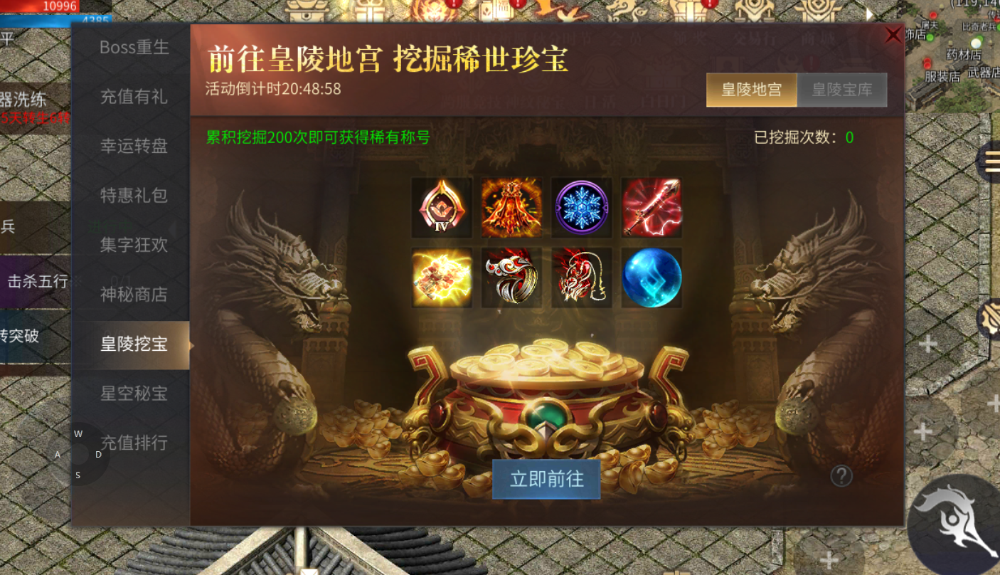 前往皇陵地宫 挖掘稀世珍宝(需开服6天)