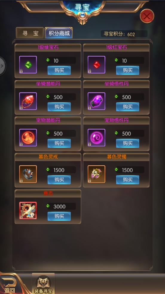 【积分商城】:每次使用钥匙寻宝就能获取积分,积分可在积分商城换取各种物品。