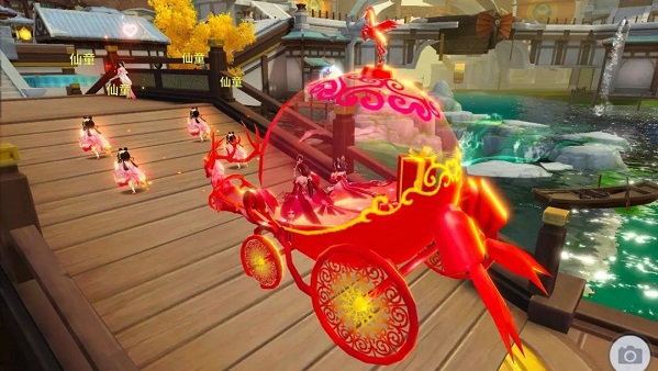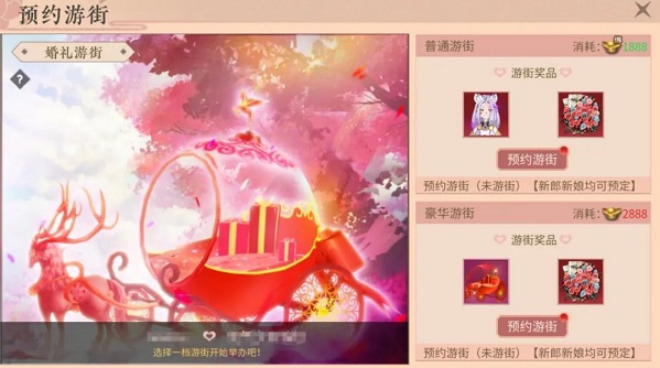 结缘后,夫妻双方均可消耗一定元宝预约游街,预约后双方同时在线,不处于活动及PVP状态即可发起游街。