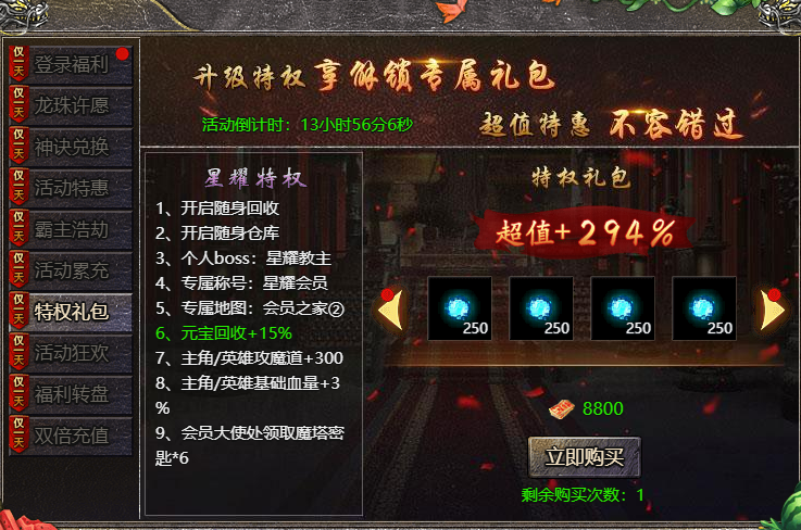 活动七、特权礼包