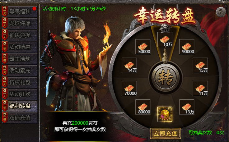 【活动内容】:活动期间,充值指定灵符可获得抽奖次数