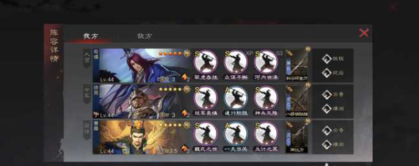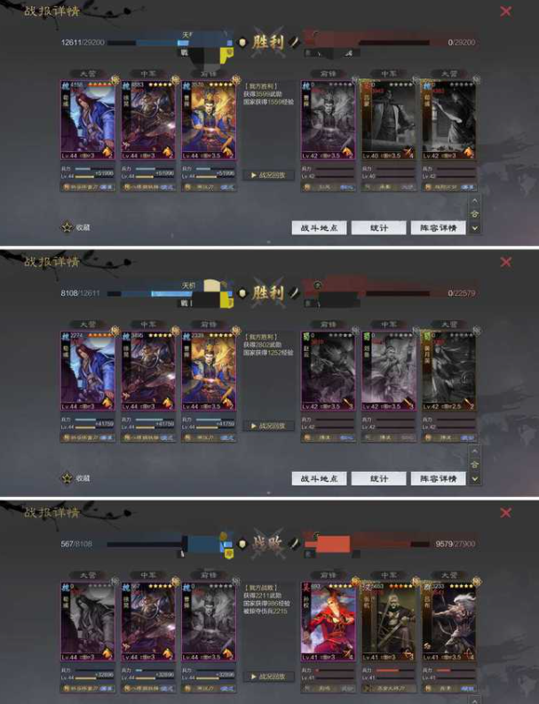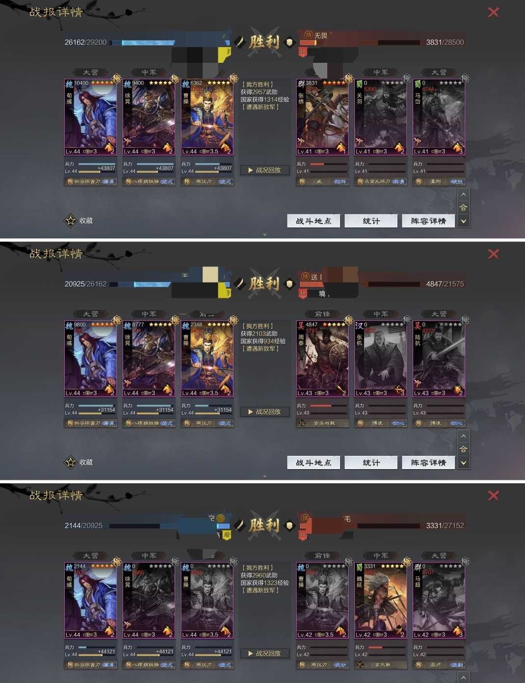 战法在最后一图。这次已经经过三次改版。据号主说,已经试过垒石反计,严颜前锋。目前最稳定的战法这是。