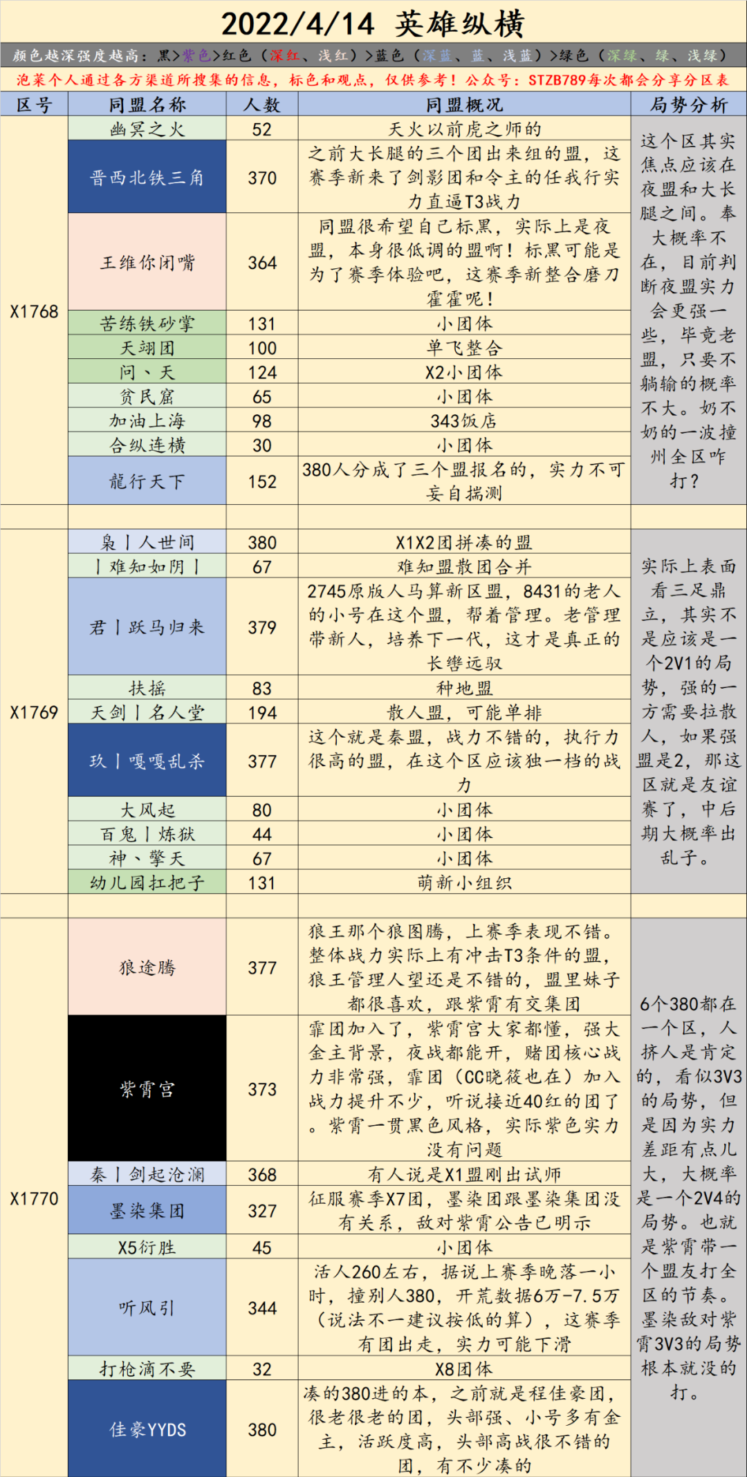 情报来源 抚剑啊抚剑X1760前线情报:【相盟】是X3【日不落】,主盟冲得快,分盟也能赶上节奏;【聚盟】是X15的【神凌烟阁】,随缘玩耍。以上是本区唯二的300+,其中【相盟】算是满编,表现出的综合实力也要更胜一筹,可能是年轻蓬勃有朝气吧。