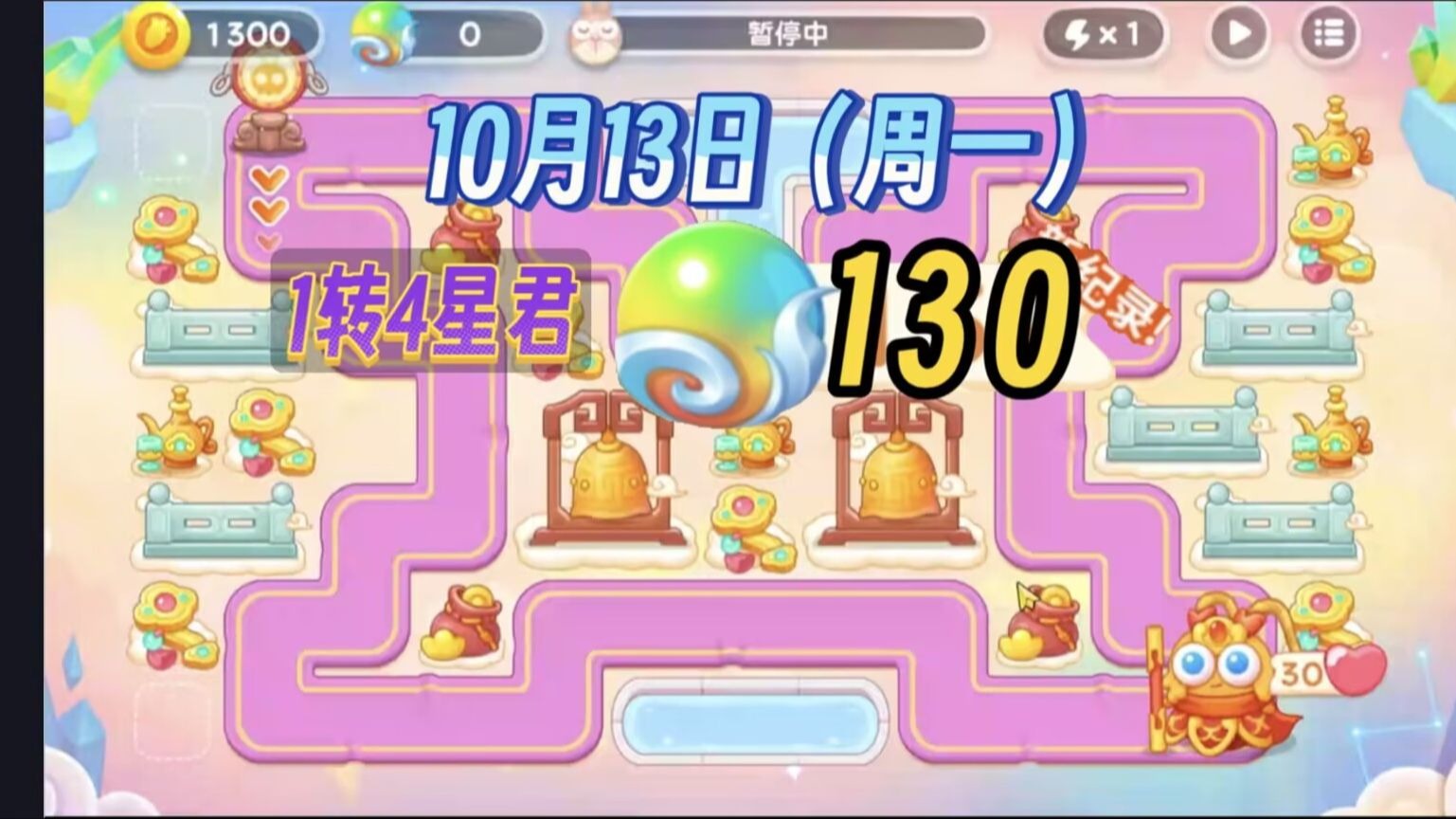 132-2灵珠 1转4星君 10.13日 无伤攻略视频