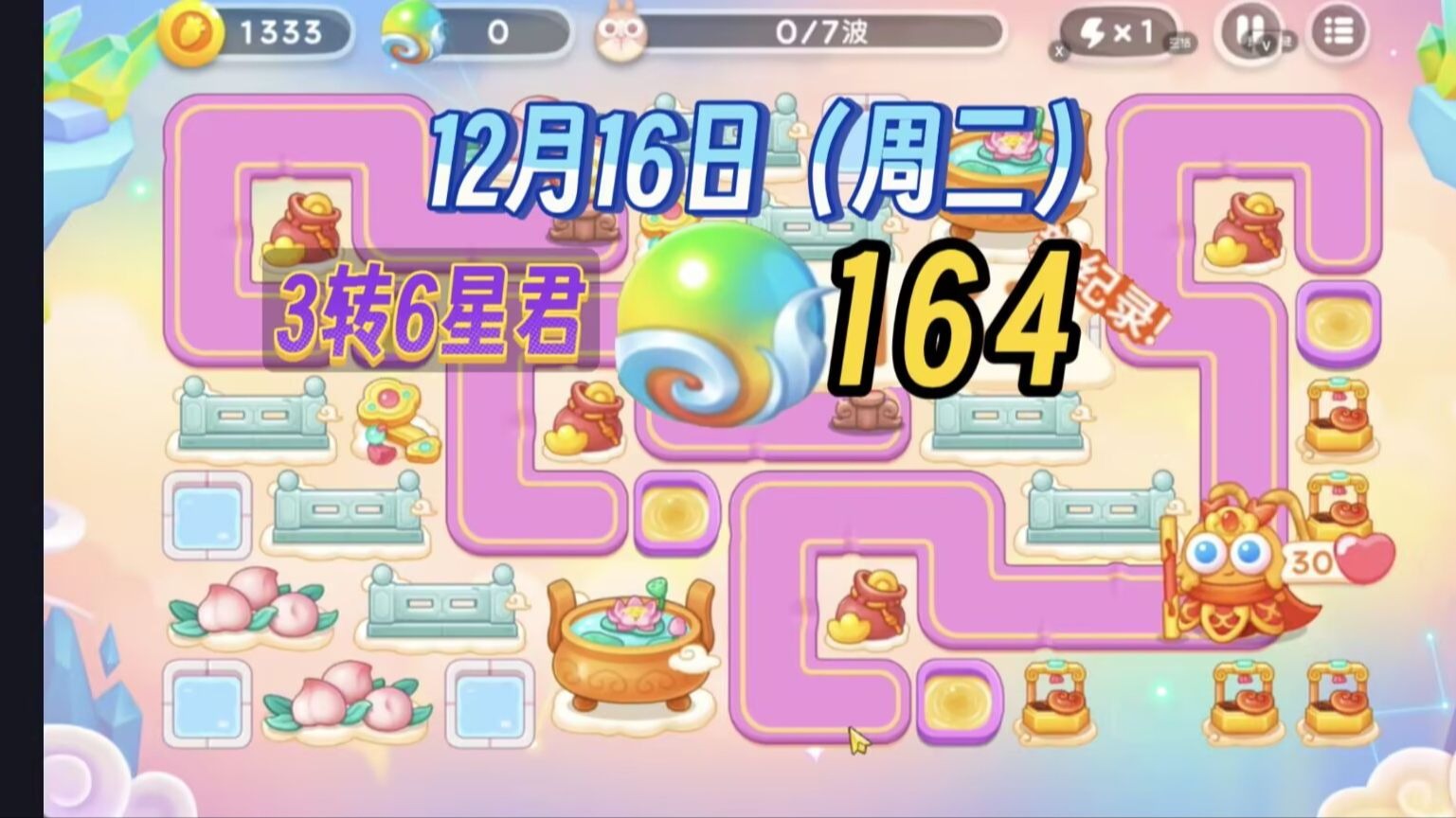 164灵珠 3转6星君 12.16日 无伤攻略视频