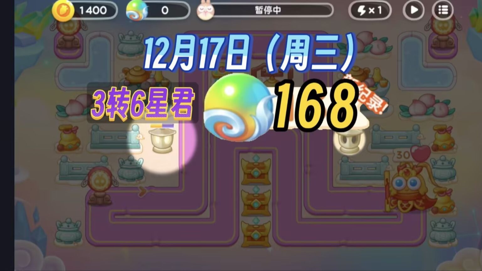168灵珠 3转6星君 12.17日 无伤攻略视频