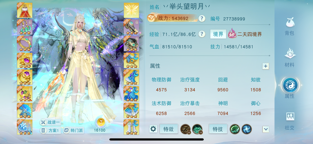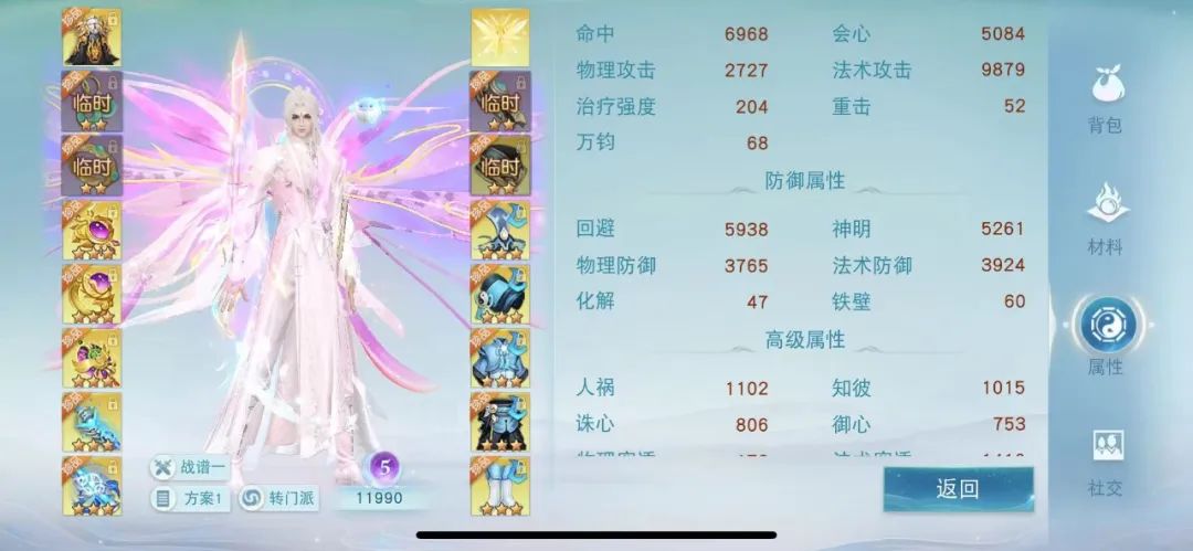 他9560点回避和高物防和法防,都可以让他在战场上轻松应对各方门派敌手来袭,3134点治疗强度和2566点治疗暴击,更是让他成为我们势力中靠谱的治疗来源之一,在战斗中为大家保驾护航!