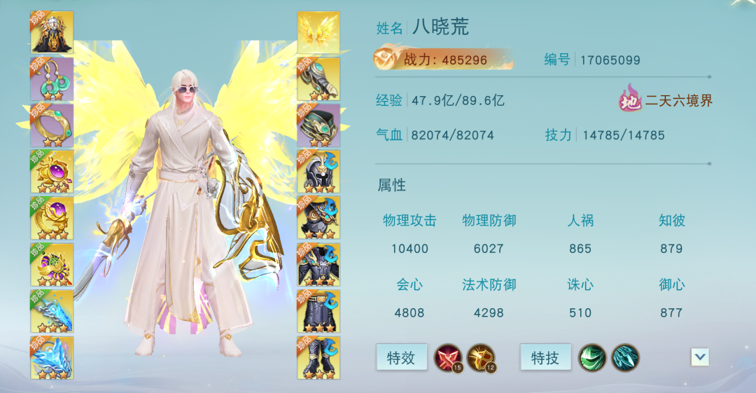 八晓荒前面也介绍过了一点,他是我们势力的尚书,还是本区装评第一的天机,6027点物防再加上4298点法防,使他能够在战场上冲锋前线时,为成员们轻松扛下大部分伤害。